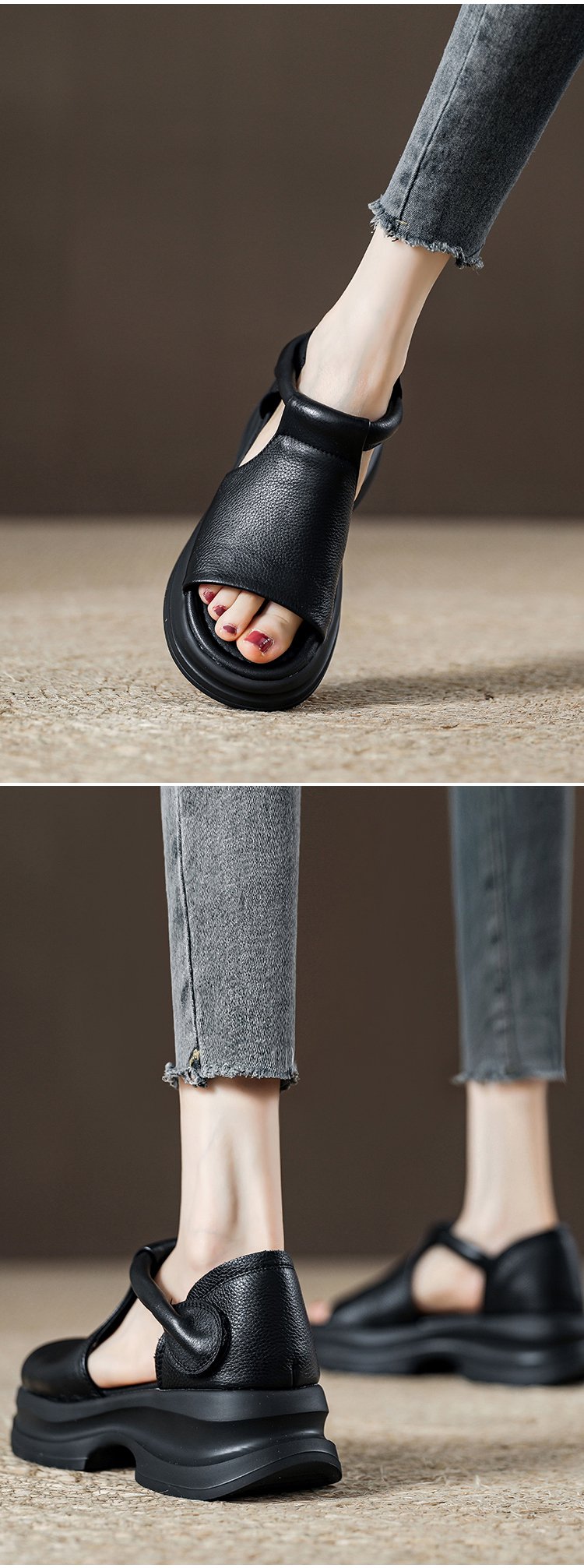 Sandalias de plataforma con cuña y punta abierta estilo coreano.